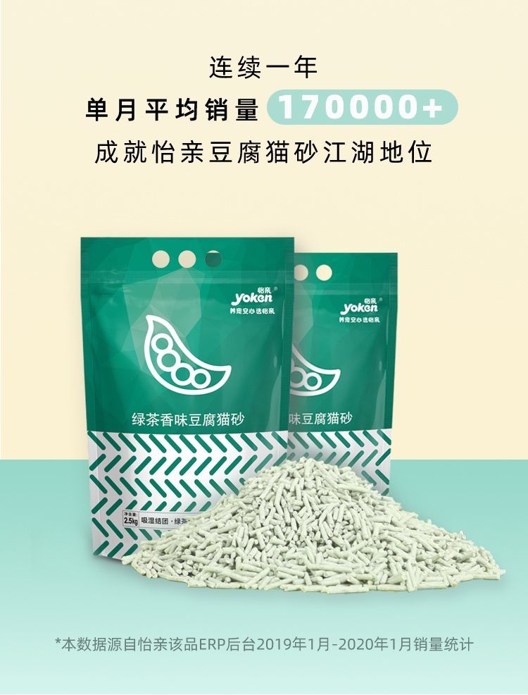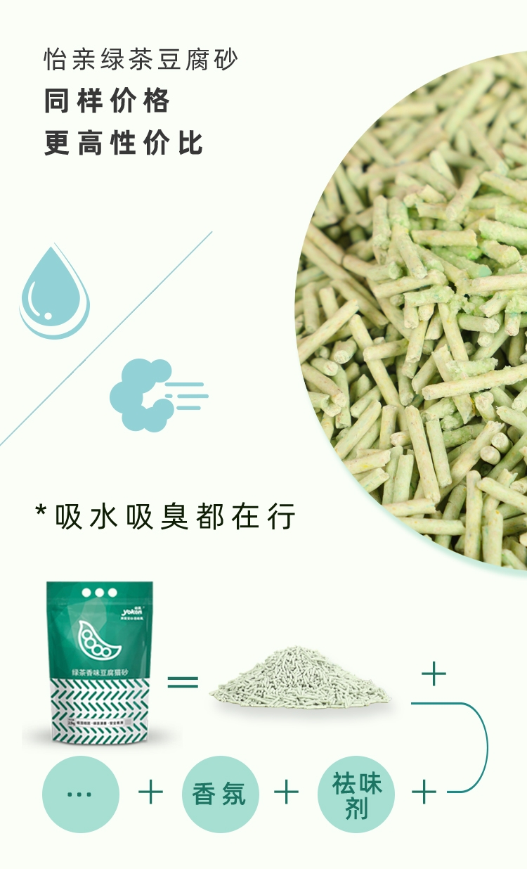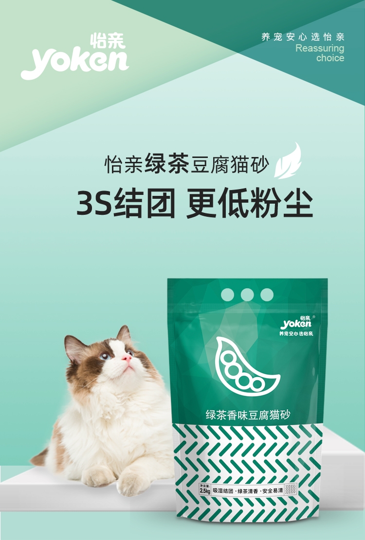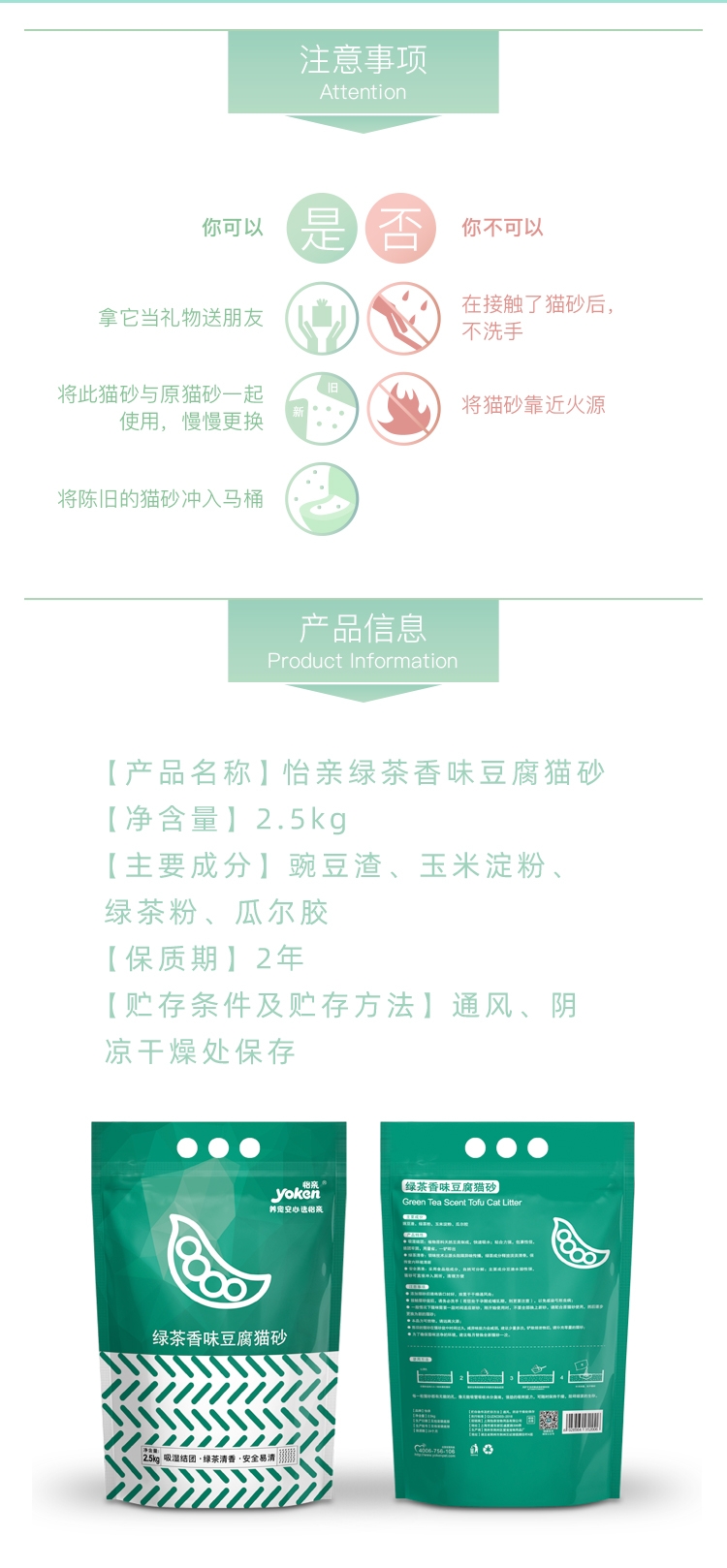 怡亲Yoken 绿茶豆腐猫砂 2.5kg 吸湿结团 紧实不沾底