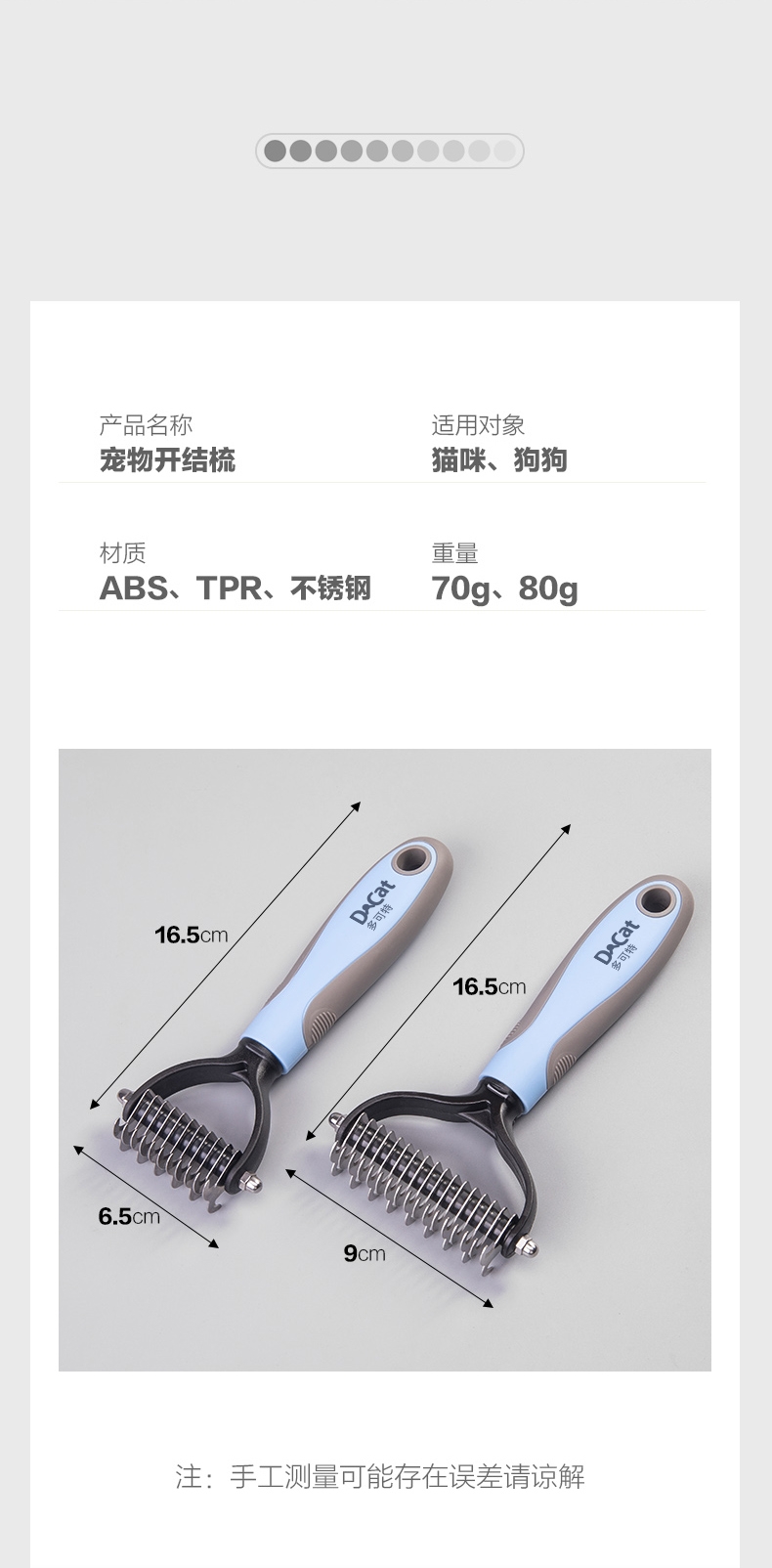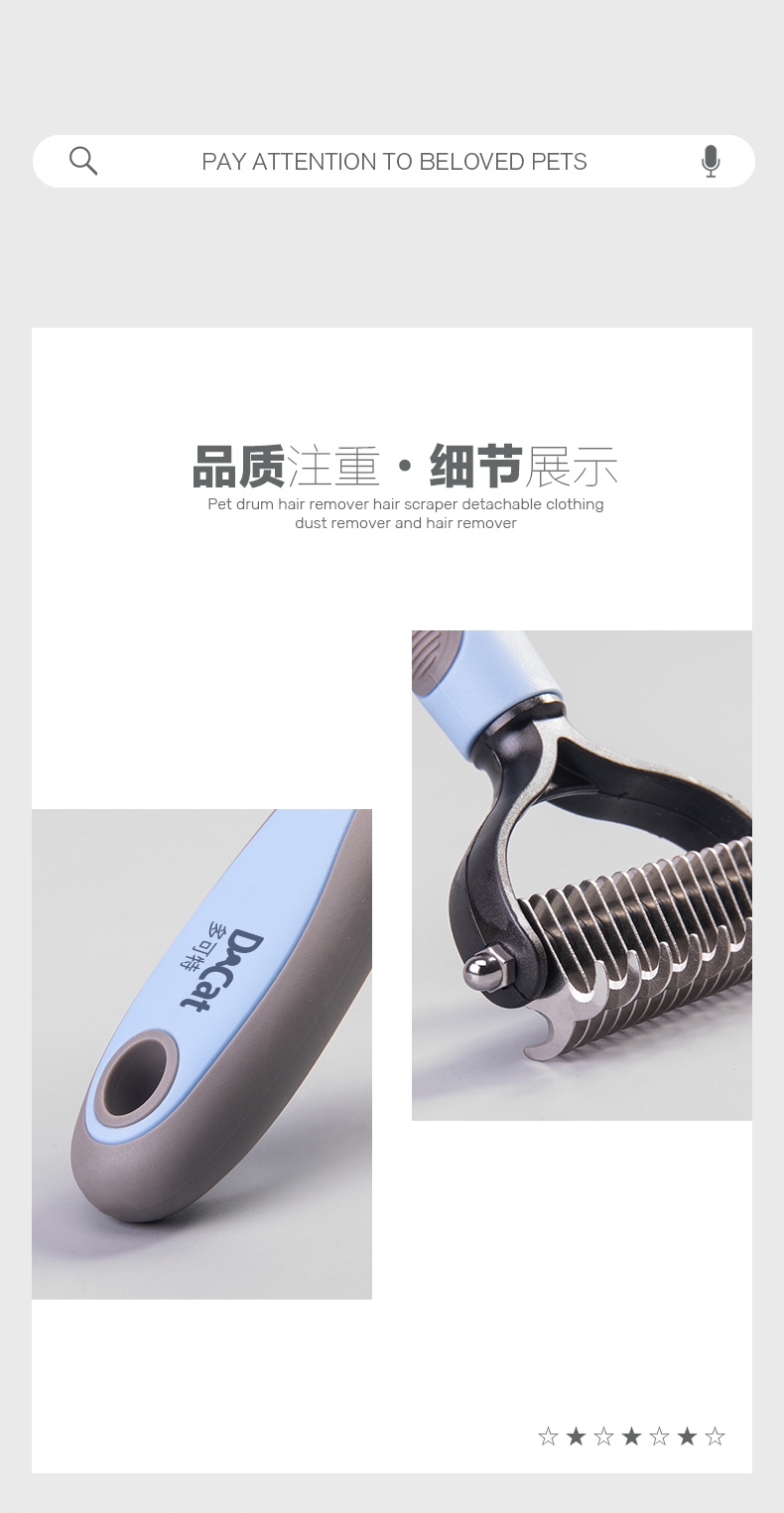 多可特 滚光面宠物开结梳