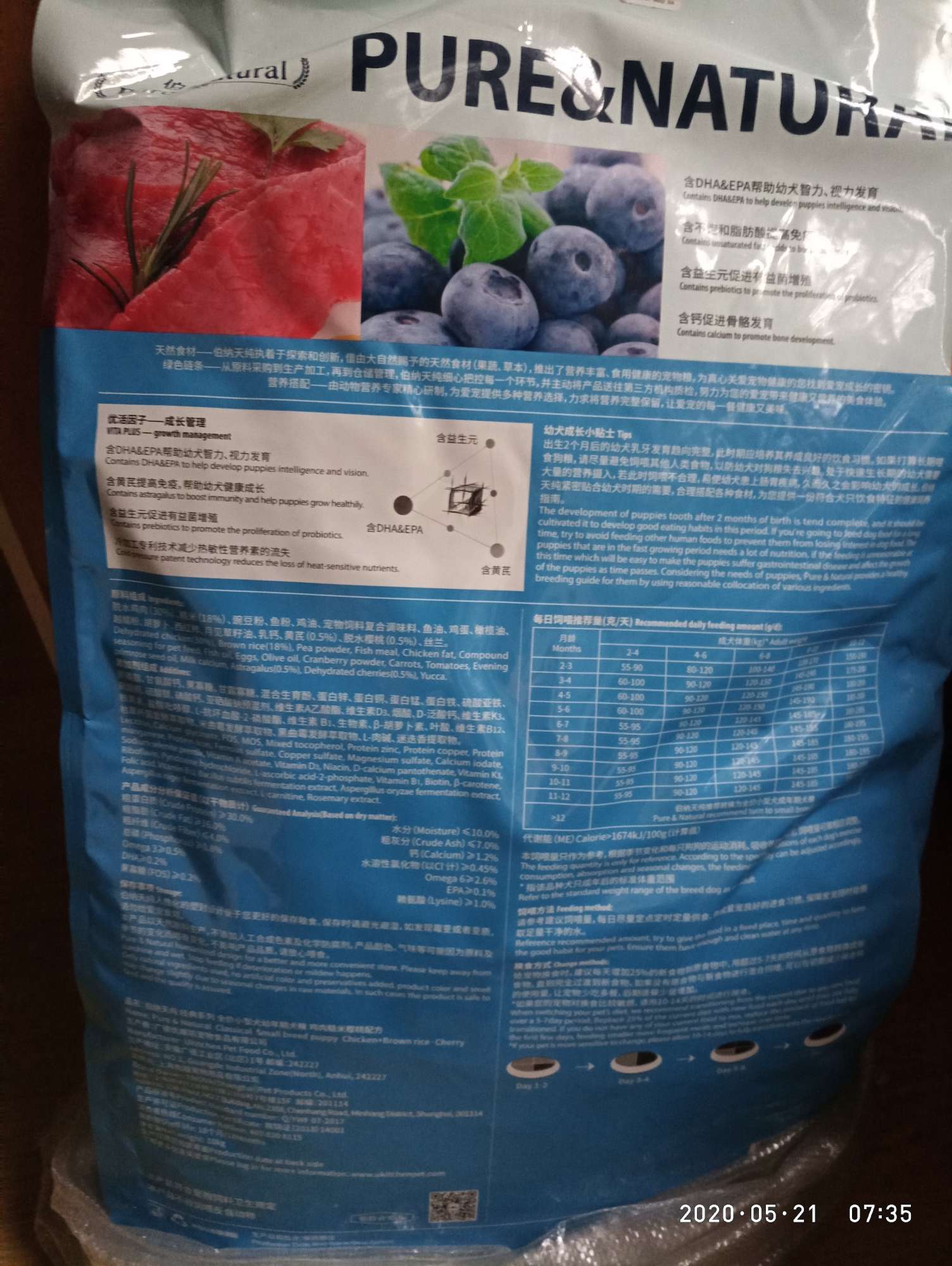 【晒单】伯纳天纯 鸡肉樱桃小型犬幼犬粮 10kg