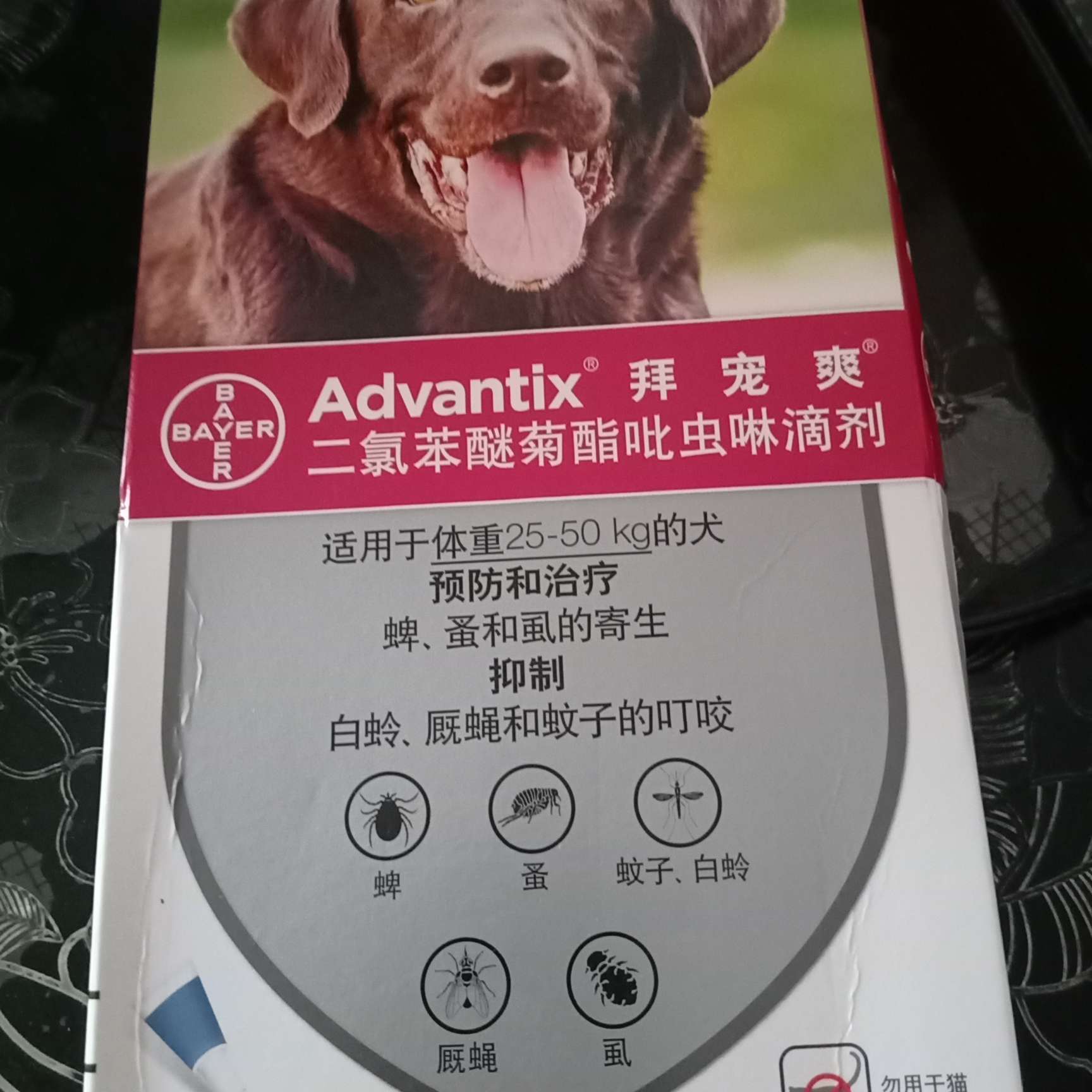 【晒单】拜宠爽 犬用体外驱虫 滴剂 适用 25kg以上 4支盒装/4个月剂量 德国进口