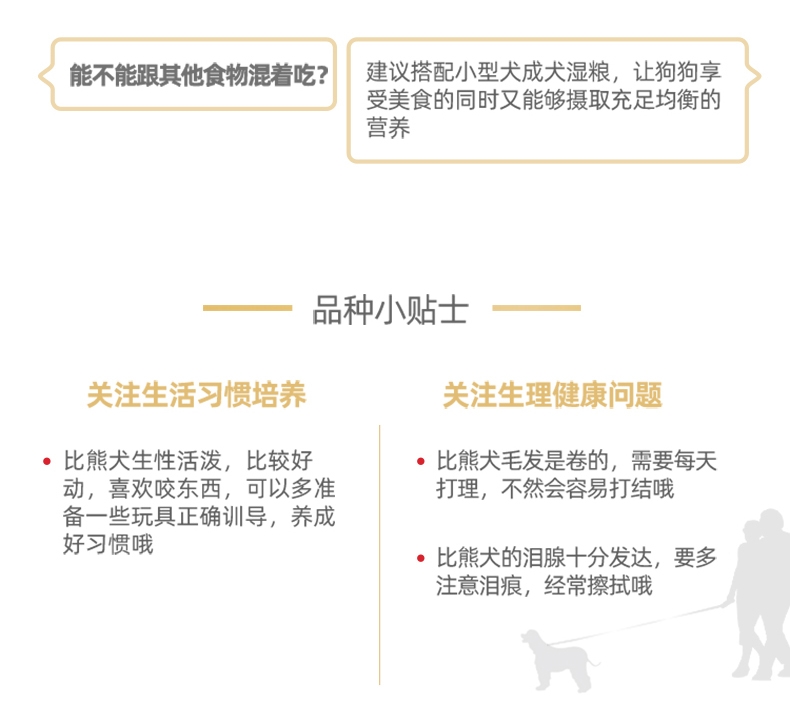 | 适用对象:比熊成犬 | 颗粒大小:定制小面包颗粒 | 出厂保质期:18个月 |