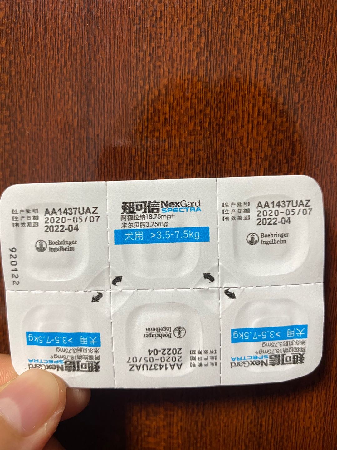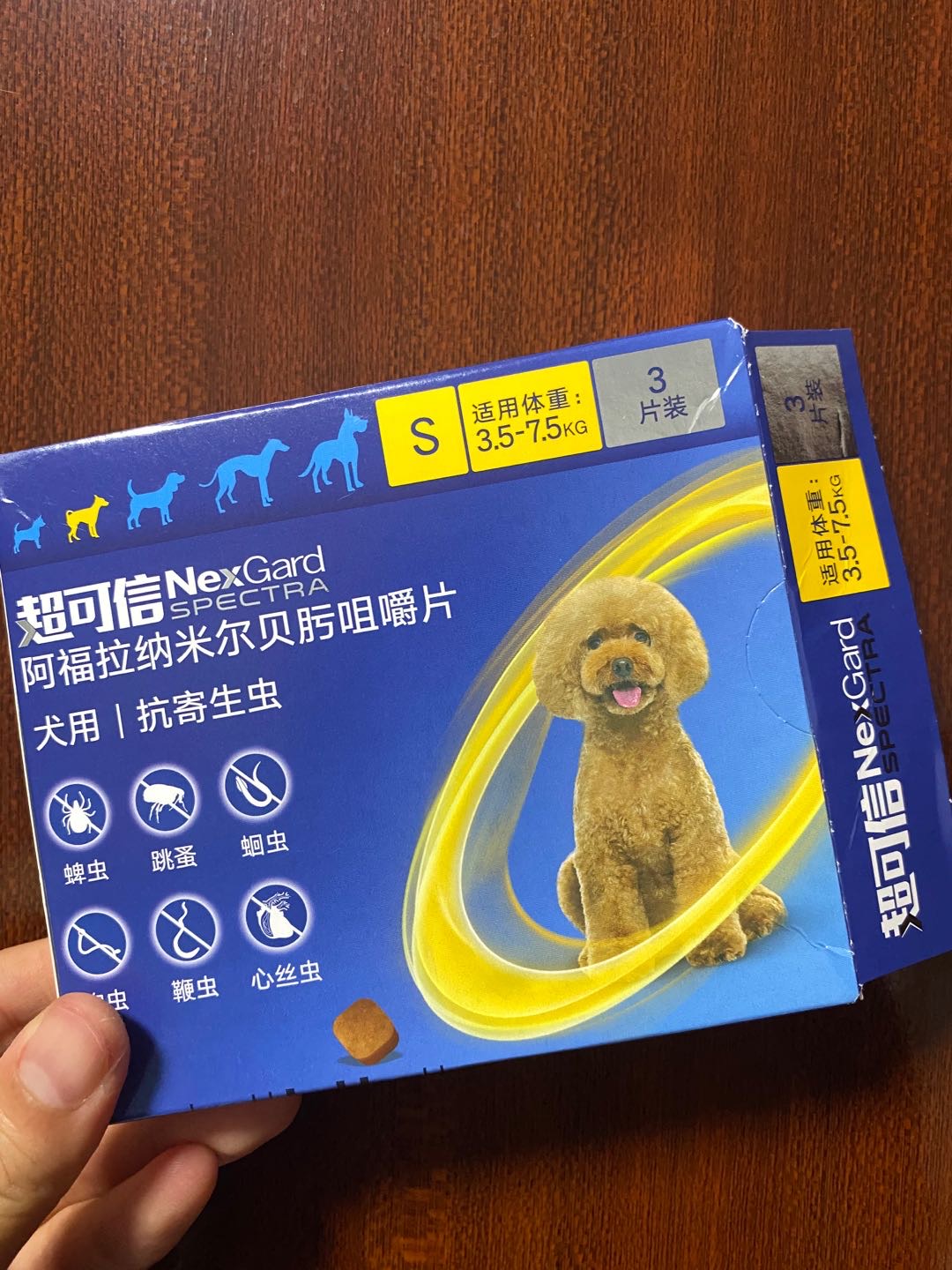超可信 犬用驱虫药 内外同驱 口服 适用3.5-7.5KG犬 3片整盒装/3个月剂量