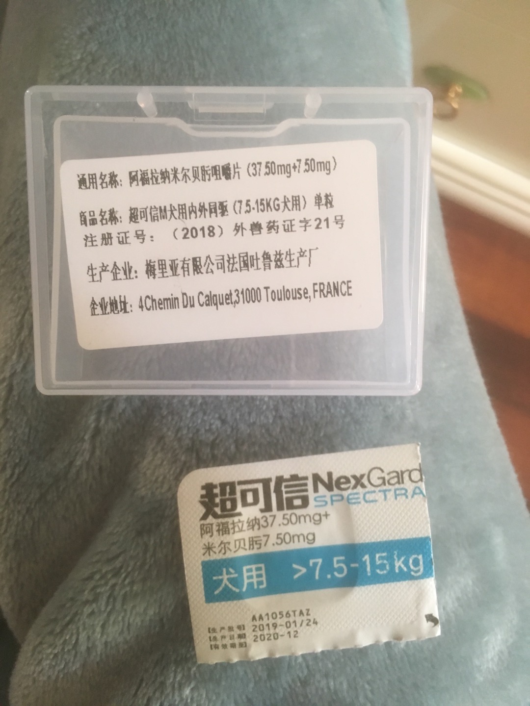| 适用症状:体内外驱虫 | 用法用量:口服,一月一次 | 兽药批文:(2018)外兽药证字21号 |