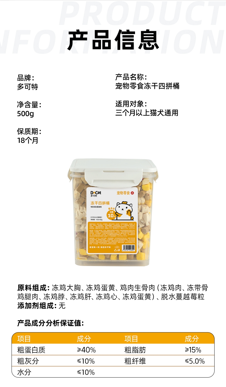 鸡胸肉桶500g缤纷桶600g鸡肉粒500g(袋装)冻干鸡肉粒300g(袋装)四拼桶500g(蔓越莓)